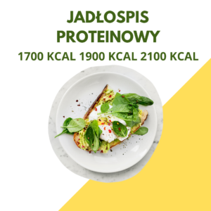 Jadłospis proteinowy. 7 dniowy plan żywieniowy, 4 posiłki dziennie bogate w białko. W jadłospisie znajdziesz posiłki wegetariańskie, ryby i mięso ale w ograniczonej ilości. Białko jako makroskładnik jest odpowiedzialne za sytość- więc możesz być pewna że jedząc zgodnie z tym jadłospisem nie ma mowy o głodzie nawet jeśli wybierzesz redukcyjna kaloryczność. Średnia ilość białka w kaloryczności 1700 kcal to 130g dziennie. Każdy posiłek to minimum 30g białka.